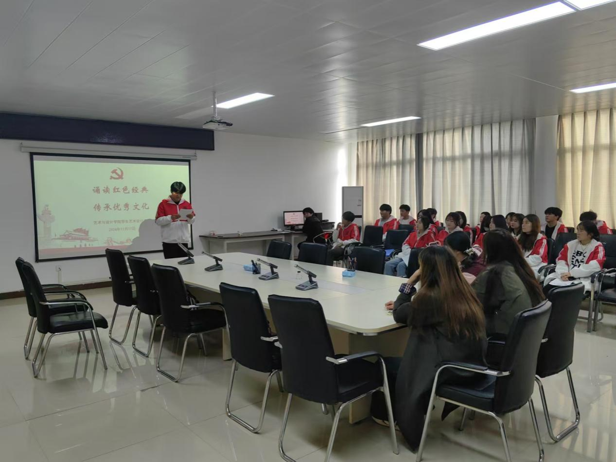 为引导青年学子从红色文化中汲取奋进力量,传承优秀革命传统,坚定理想信念,11月17日学生艺术设计支部在实训楼SY5516开展“诵读红色经典 传承优秀文化”活动。本次会议由学生干部何利洛和张钰婕主持,入党积极分子、发展对象参加。