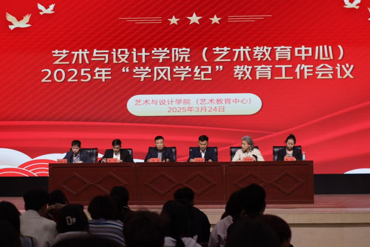 3月24日下午,艺术与设计学院(艺术教育中心)2025年“学风学纪”教育工作会议在活动中心召开。艺术与设计学院党总支书记华雷、副书记许宗乐、党总支办公室主任朱宁、分团委书记胡耀文、辅导员吴琛群、张欣以及2024级、2025级全体学生参加会议。