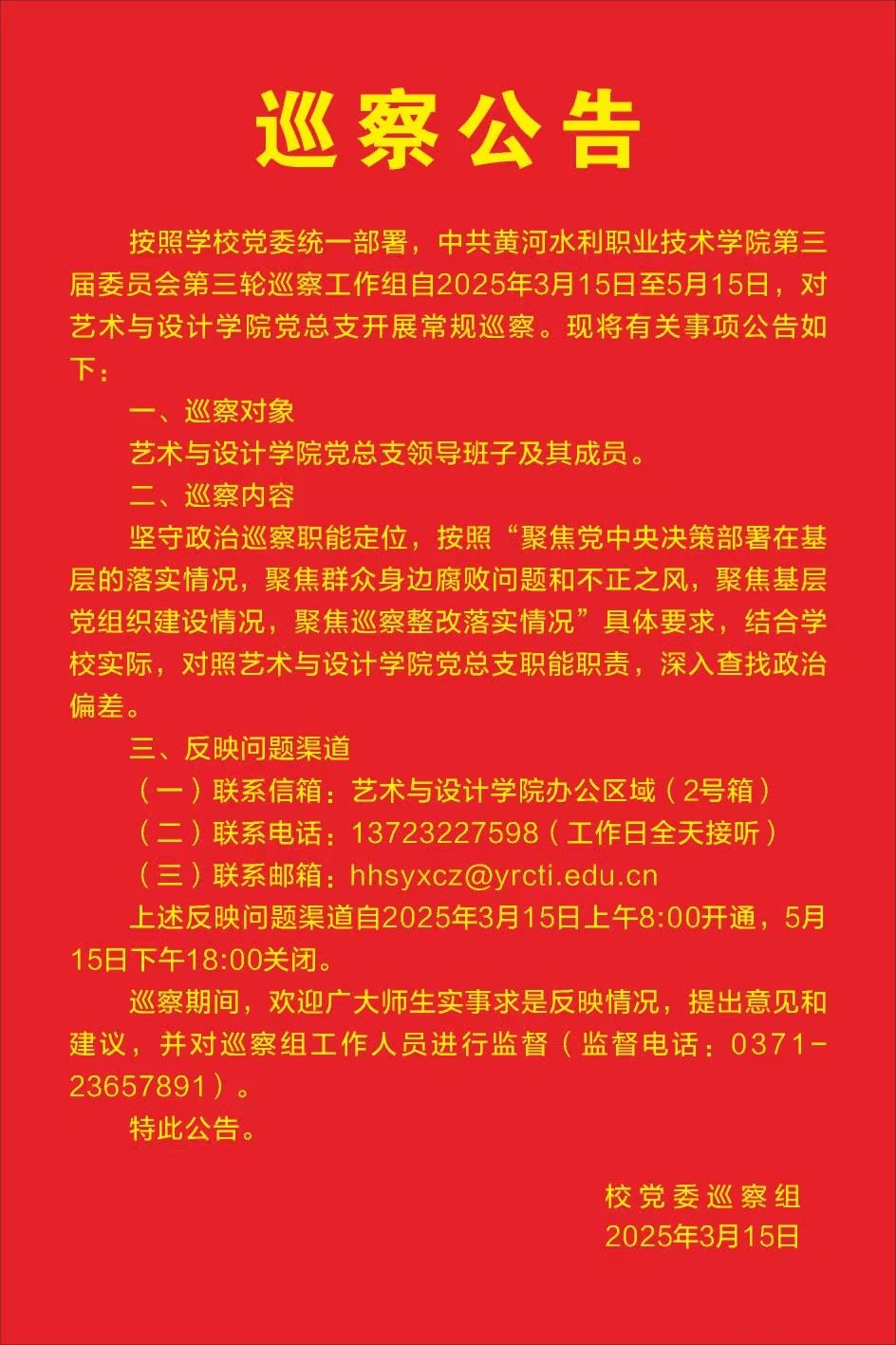 作者:党委巡察工作办公室 点击数: 发布时间:2025-03-17 09:16:03 责任编辑:陶茵虹 审核人:华雷