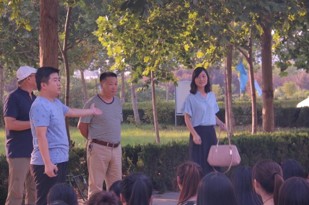 见面会上,首先由华主任进行自我介绍并向新生们问好,希望同学们认真对待军训,它不止是一种训练方式也是新生们迈向大学的第一步,并强调“度”的重要性,强调本次军训遵循严格训练,文明带兵,科学管理的军训方法。他提出要充分调动学生参加训练和其他活动的积极性,培养学生的集体荣誉感,争创优先,确保各项工作取得成效。来书记讲到要在短短的11天内完成队列,阅兵式与分列式等军训科目,又要组织开展应急疏散演练,红歌比赛,内务评比等活动,时间紧,任务重。希望全体参训人员做好本职工作,要教育和引导学生,切实提高学生思想政治觉悟,激发学生军训热情。