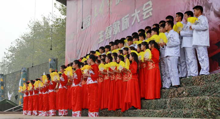 为纪念上甘岭战役胜利六十四周年,2016年11月18日下午,艺术系师生代表我校前往驻汴某部队进行合唱表演,和各个演出团体联合演出,参加“永远的上甘岭”庆典活动。