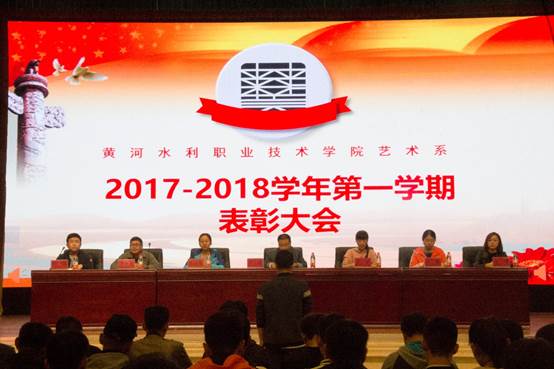 金秋送爽,丹桂飘香,2017年10月24日下午6点30分,黄河水利职业技术学院艺术系在我校活动中心隆重举办了2017—2018学年第一学期表彰大会。参加此次大会的人员有,艺术系党总支书记耿亚杰、艺术系主任华雷、艺术系办公室主任周洪军、艺术系分团委书记赵巍、环艺教研室主任李娅、视觉教研室主任陈豫、音表教研室主任高杨;及艺术系全体辅导员和学生。