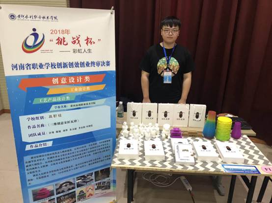 2018年6月11-12日,2018年“挑战杯——彩虹人生”河南省职业学校创新创效创业省级决赛在郑州铁路职业技术学院举办,黄河水利职业技术学院校团委带领我校的三个创业项目参加本次省级决赛。艺术系分团委书记赵巍、教师李思荟及学生环艺1702班许骞、环艺1701班陈旭、信息系刘华带项目“三维创意宋匠瓦肆”参加2018年“挑战杯——彩虹人生”河南省职业学校创新创效创业省级决赛。