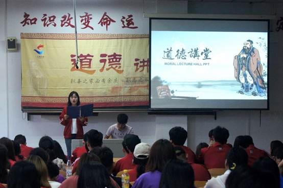 6月12日,艺术系“道德讲堂”下午在教学楼6103开讲。出席本次活动的艺术系分团委张嫚老师、17级全体新生及16学生干部共同接受了一场思想道德的洗礼。“道德讲堂”的寓意在提高各位同学的心理素质,宣传中华传统美德,来营造和谐有序的文明健康社会的氛围。因此,本次讲堂围绕一个“仁义礼智信”五常来展开,鼓励同学们弘扬中华传统文化。