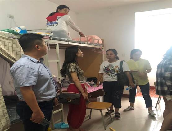 2018年9月8日下午,艺术与设计学院党总支书记耿亚杰、艺术与设计学院院长华雷、艺术与设计学院分团委书记赵巍、艺术与设计学院17级视觉辅导员张嫚、艺术与设计学院18级环艺辅导员杜雨及艺术与设计学院18级视觉、歌舞表演辅导员李辰组成慰问检查团对18级新生宿舍进行慰问检查。