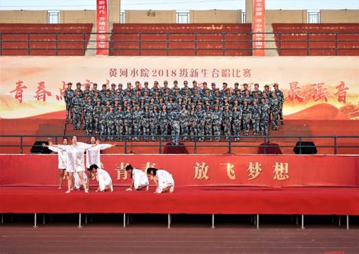 2018年9月21日下午16:00,黄河水利职业技术学院2018级新生合唱比赛在祥云体育场隆重举行。艺术与设计学院参加本次新生合唱比赛。