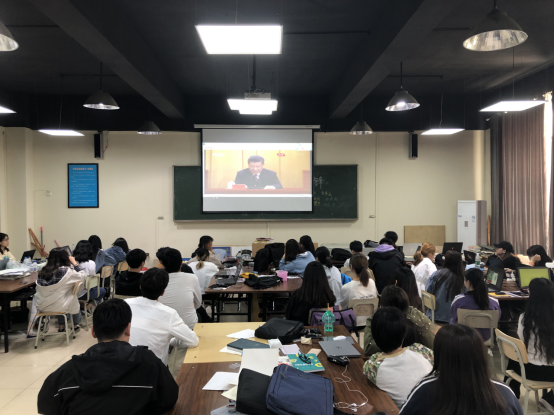 2019年4月30日上午10:30,纪念五四运动100周年大会在北京举行,中共中央总书记、国家主席、中央军委主席习近平出席大会并发表重要讲话。艺术与设计学院党总支组织师生观看直播,部分教师利用课堂条件,让青年学子在教室聆听习近平总书记对广大青年的寄语,让思政课走进课堂。