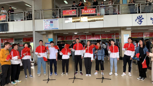 为激发广大青年学生爱党爱国的热情,艺术与设计学院学生党支部于2019年4月29日中午11点40分,在校学生餐厅举办了第二场“红歌快闪”活动。本次活动由《我们都是追梦人》我爱你中国《唱支山歌给党听》3首脍炙人口的红色歌曲为主线,豪迈雄壮的红色经典曲目在校园中久久回荡令人激情澎湃。本次活动采用“老歌新唱”的模式,以此传承爱国歌曲的精神与内涵,让人耳目一新,喜闻乐见。艺术与设计学院的师生用歌声将对祖国、对党深深的祝福以及美好的期望融入一首首红歌声中,引起过往师生纷纷驻足观看,一同感受这场红色盛宴,营造了良好的校园文化氛围。