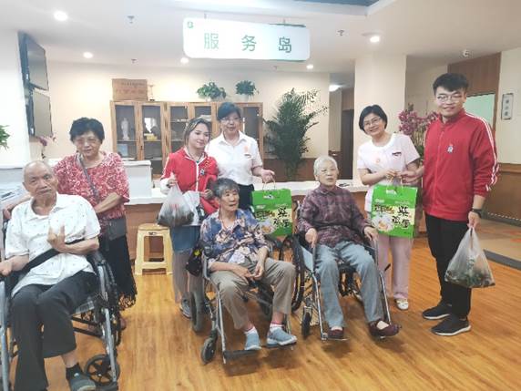 在敬老院里,艺术与设计学院的志愿者们给老人们送去了鸡蛋和粽子,陪老人聊天、拉家常,详细询问老人家近期的身体状况,叮嘱他们按时吃饭,注意防暑,提前为他们送去节日的关怀与祝福。敬老院里阵阵欢声笑语,场面其乐融融,处处洋溢着温馨、祥和的气氛。志愿者们表示要不断增强社会责任意识与奉献意识,定期来敬老院做志愿服务,将敬老爱老的传统美德发扬下去。