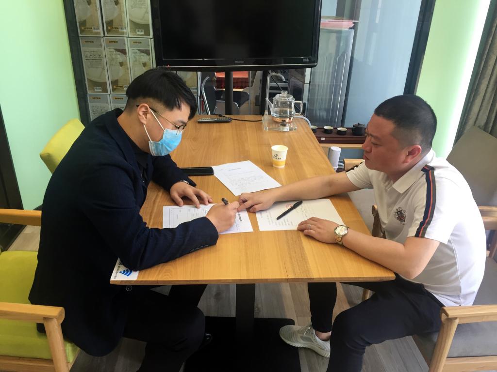 2020年5月13日上午8:30,艺术与设计学院校企合作办主任杜雨,来到开封城市人家装饰有限公司,与公司设计部经理曹伟,就学生的就业、顶岗实习和建立校企合作单位等事宜进行了深入的交流。