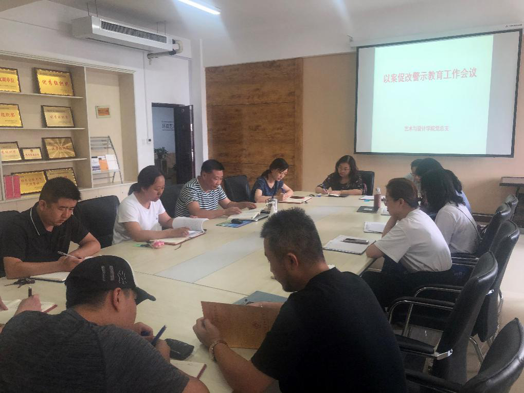 为贯彻落实8月15日学校党委理论学习中心组(扩大)召开的“以案促改”专题学习会议精神,根据校党委2020年以案促改工作安排部署,艺术与设计学院于2020年8月27日召开“以案促改”警示教育会议,院全体科级以上干部列席,党总支书记耿亚杰主持会议。
