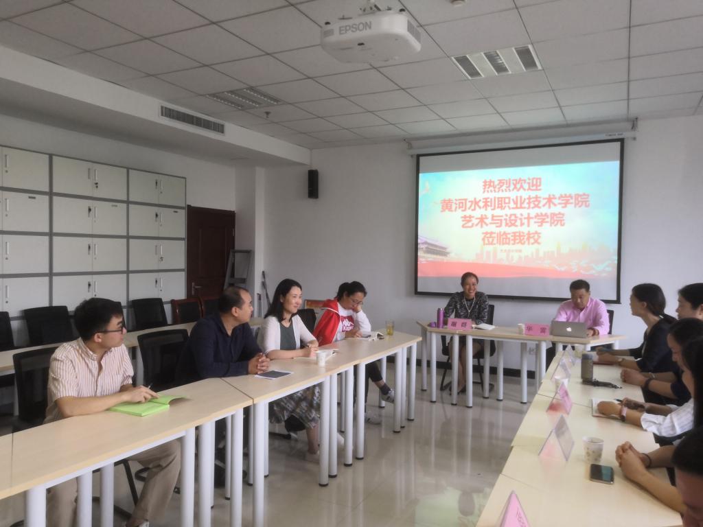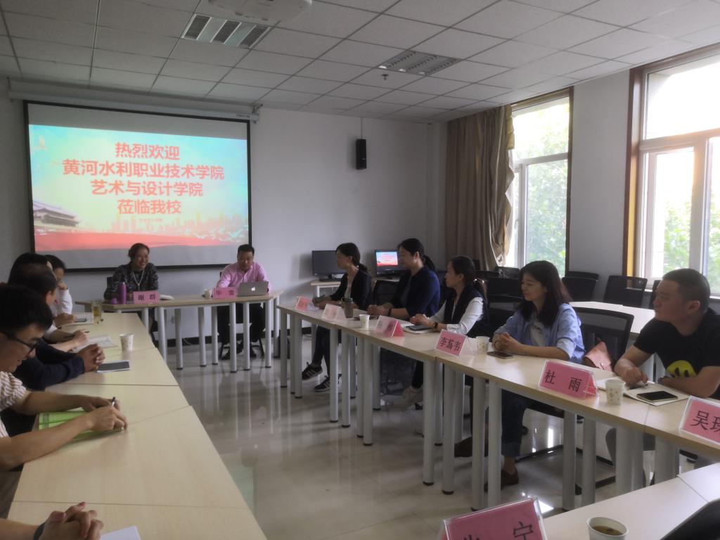 首先,河南经贸职业学院艺术设计学院院长谢群对我院的到到来表示欢迎并介绍了河南经贸职业学院艺术设计学院近几年的发展与成就。我院副院长鄢彬彬感谢河南经贸职业学院的热情接待,同时介绍了我院的基本情况。接下来,我院院华雷详细介绍了我院近几年艺术设计专业与实训室建设的情况与成就。并就艺术教学管理、艺术专业群建设、艺术设计工作室建设、艺术产业学院建设、学生顶岗实习及就业、学生管理,爱国教育,校园活动等相关问题与河南经贸职业学院艺术设计学院进行了交流研讨。
