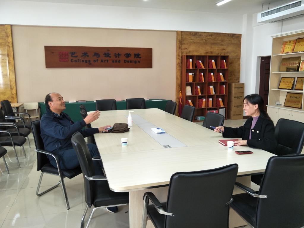 祁培忠老师首先对我院的规模及教学设置等进行了了解,并向鄢院长详细询问了我院环境艺术设计专业的教学体系、课程设置、实习就业情况等。后参观了我院的实训室、展览室等实训教学设施和资源,频频表示赞许。