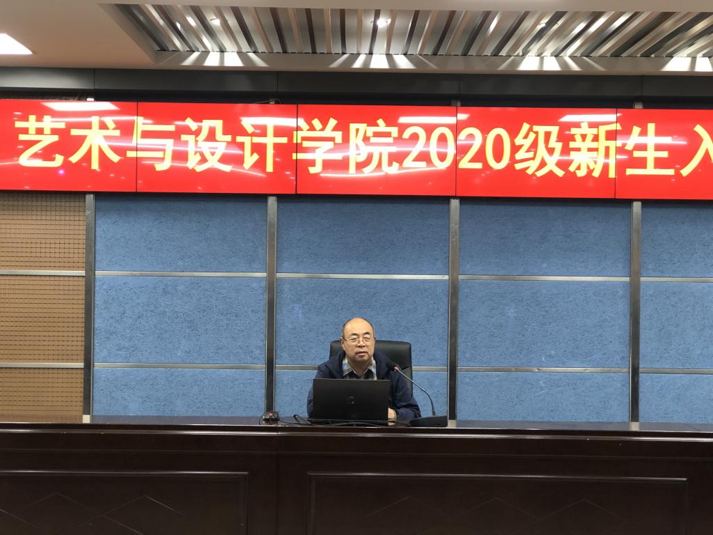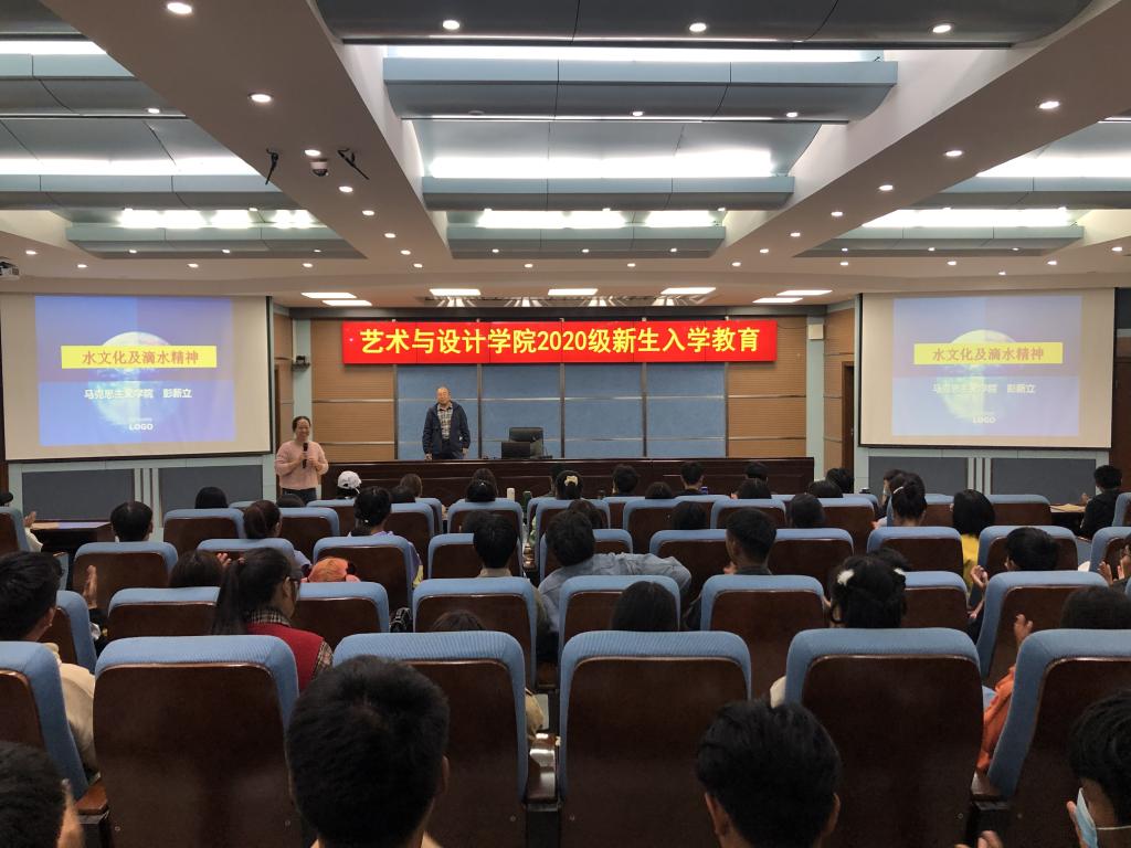 11月4日下午3点,艺术与设计学院在5号实训楼三楼学术报告厅举办2020级新生入学教育,邀请我校马克思主义学院院长彭新立教授做“水文化及滴水精神”专题讲座。艺术与设计学院党总支书记耿亚杰、副书记赵巍、分团委书记张嫚、2020级新生辅导员周洪军及2020级全体新生参加讲座。