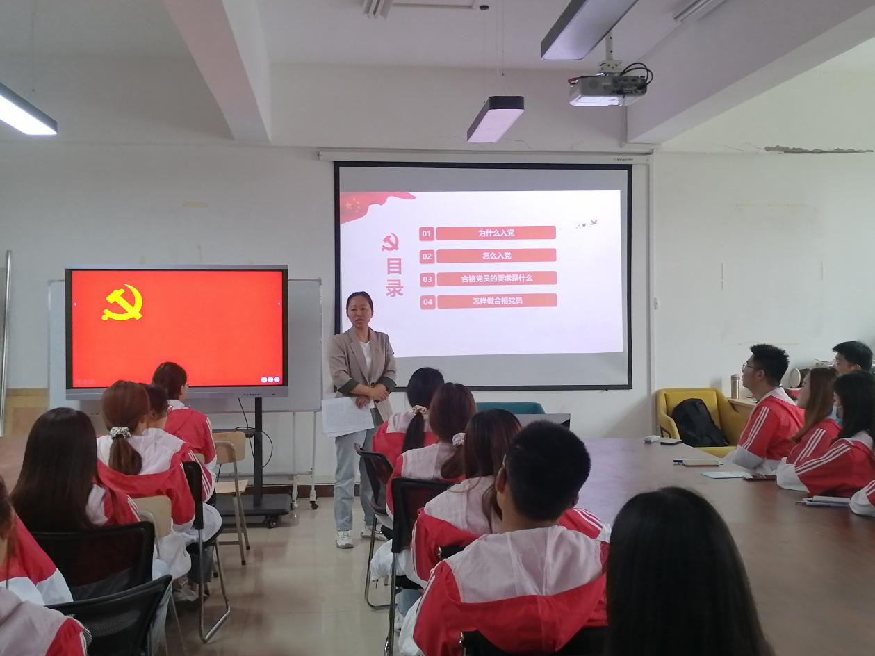 在活动中,耿书记通过讲述边防战士用生命为祖国冲锋陷阵,用青春保家卫国,在人烟稀少、条件恶劣的环境中坚守自己初心使命的感人事迹,让全体学员明白投笔从戎怀祖国,青春无悔赴边关的理想信念。随后,耿书记从为什么入党、怎么入党、合格党员的要求及怎样做合格党员这四个方面进行详细讲述,她鼓励入党积极分子应当树立正确的人生价值观,在大学期间应全方面发展,不断提高自身认知水平,用自己的实际行动积极向党组织靠拢。