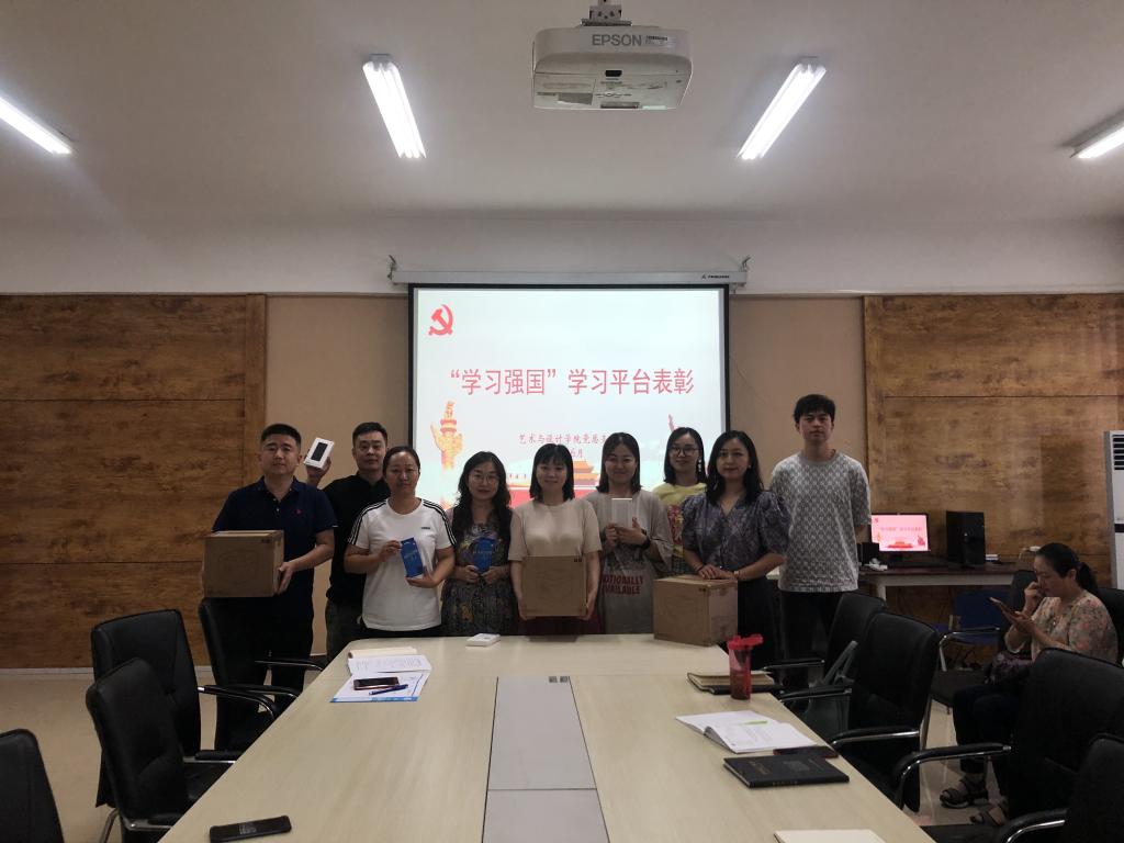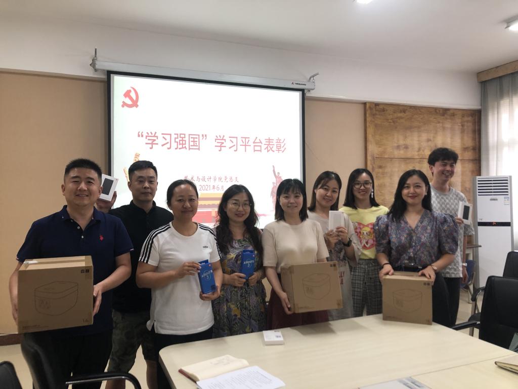 在庆祝建党一百年之际,为充分用好“学习强国”学习平台,深入开展党史学习教育,着力发挥党建政治引领作用,艺术与设计学院党总支于6月29日下午在学院SY5616会议室召开全体教职工会议,对2021年上半年“学习强国”学习平台前十名党员教师进行表彰并为大家发放奖品。
