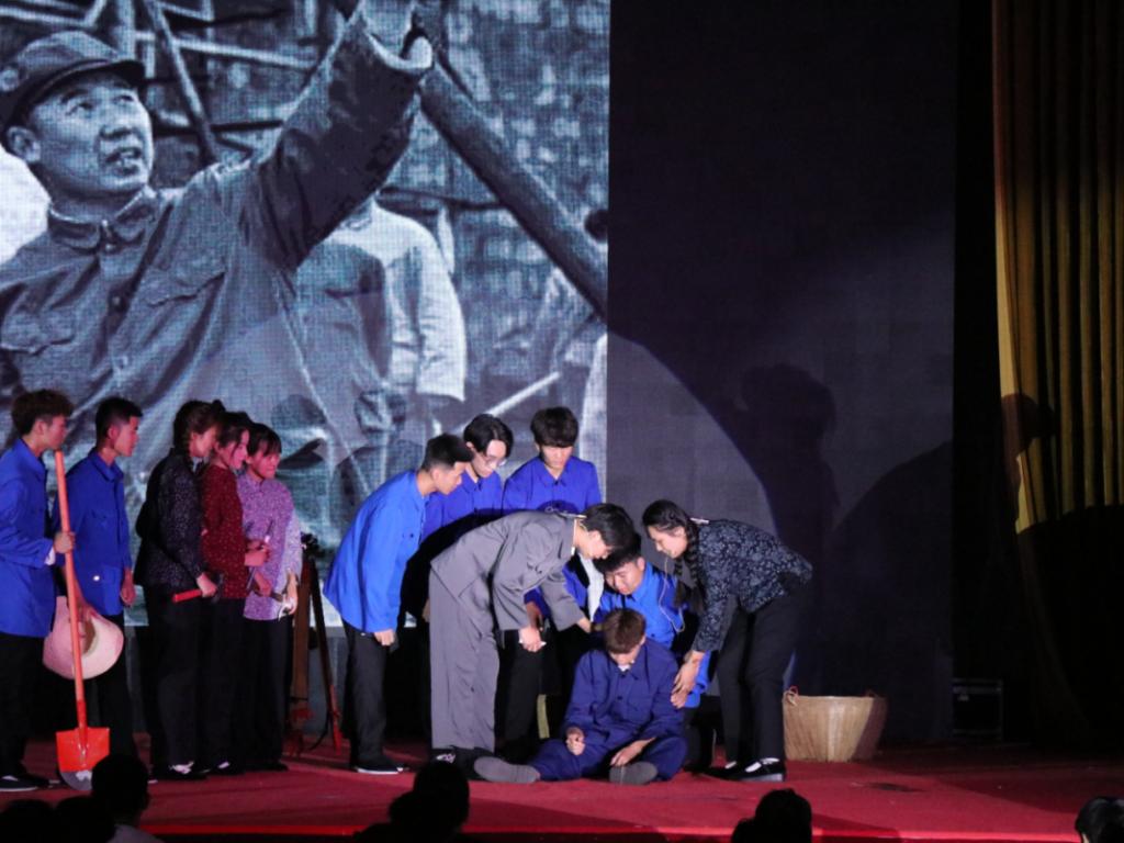 图一:学生党员及入党积极分子表演话剧《执耒忠魂系太行 优秀校友吴祖太》