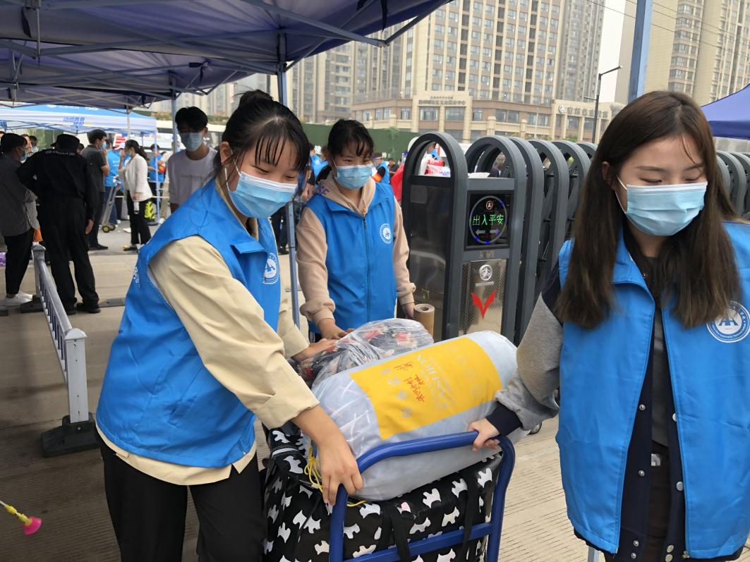 图五:党团学生干部及入党积极分子帮助新生运送行李