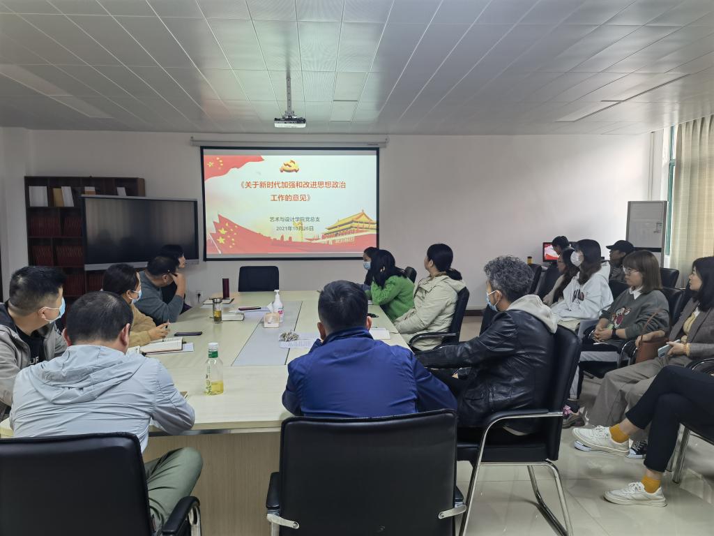 教工艺术设计支部组织全体教师传达学习《关于新时代加强和改进思想政治工作的意见》《中共黄河水利职业技术学院委员会网络意识形态工作责任制实施细则》《中共黄河水利职业技术学院委员会意识形态工作责任制实施细则》文件精神并开展“全员开讲”党史小故事分享活动