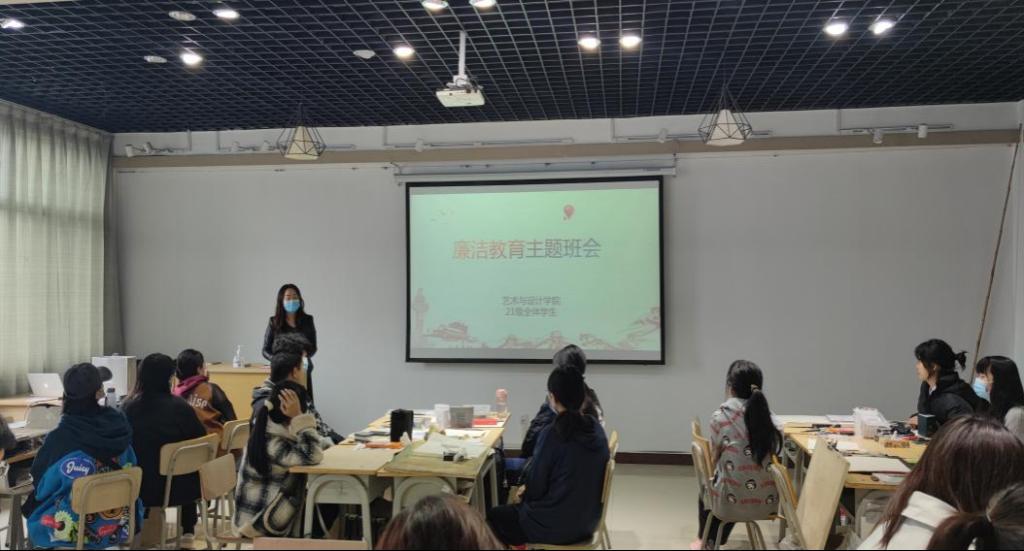 为深入学习贯彻习近平新时代中国特色社会主义思想和党的十九大精神,深入学习贯彻习近平总书记在党史学习教育动员大会上的重要讲话精神,进一步推进艺术与设计学院学生党史学习及廉洁教育工作,培养学生廉洁自律意识和行业道德观念,艺术与设计学院各年级辅导员于2021年10月组织学生开展廉洁教育主题班会活动。