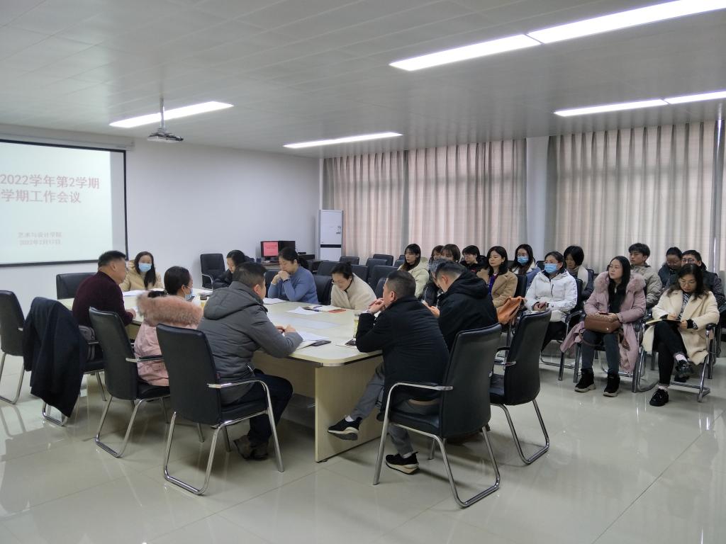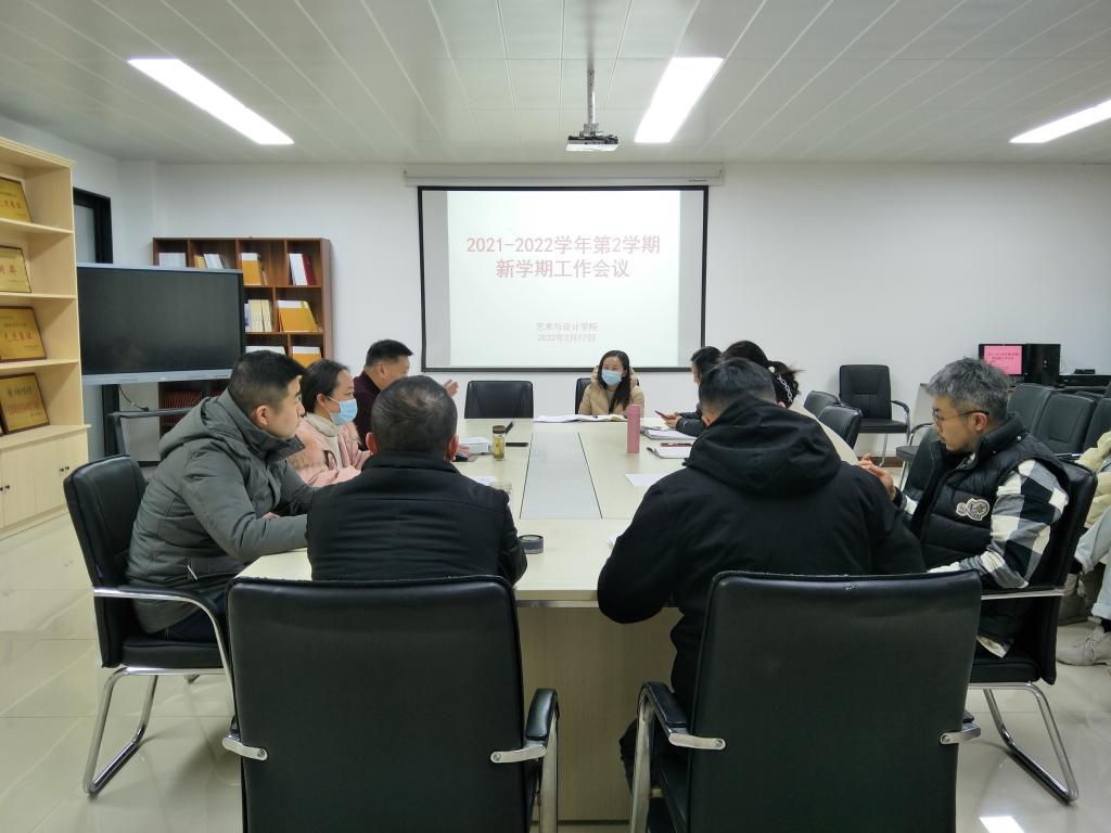 2月17日下午,艺术与设计学院组织召开2021-2022(2)期初工作部署及教学安排会议,院领导班子,各教研室主任及全体教师参加会议。