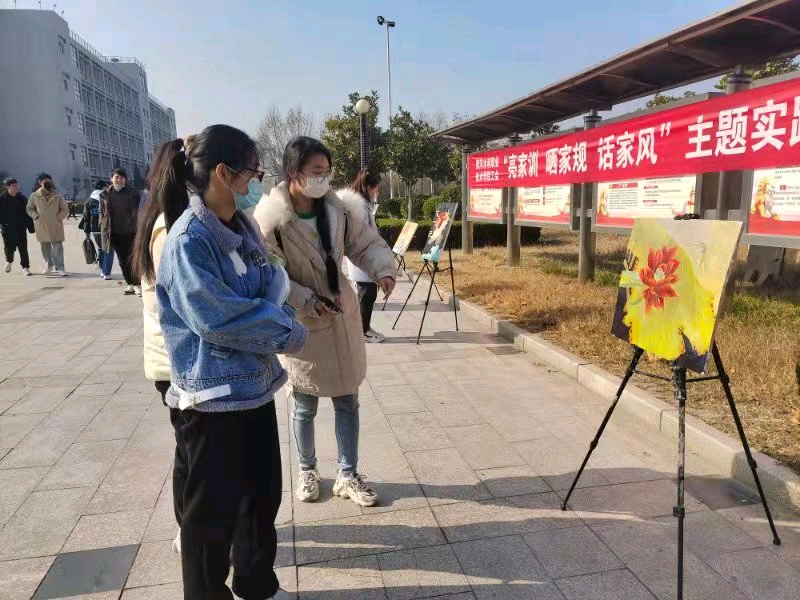 为扎实推进校园廉政文化建设,使廉政文化深入人心。艺术与设计学院于12月14日在校内多地开展“‘艺’语清风,学史正身”廉政艺术作品展。学院党团学生干部参加本次活动。