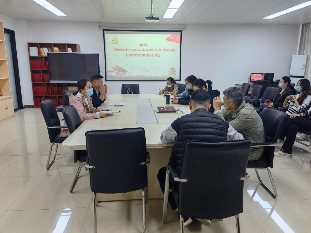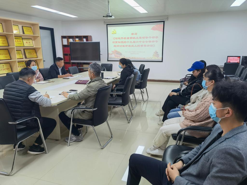 4月12日下午,艺术与设计学院党总支组织全体教职工在学院SY5516会议室开展政治理论学习,学习《习近平在省部级主要领导干部学习贯彻党的十九届六中全会精神专题研讨班开班式上的重要讲话》和《党的十八大以来习近平总书记关于体育的重要论述》,党总支书记耿亚杰领学。