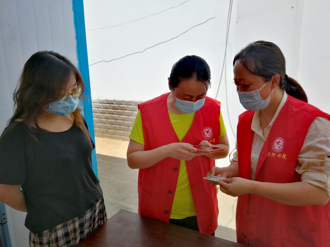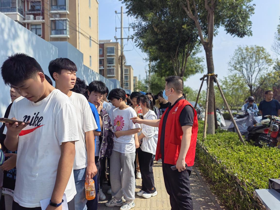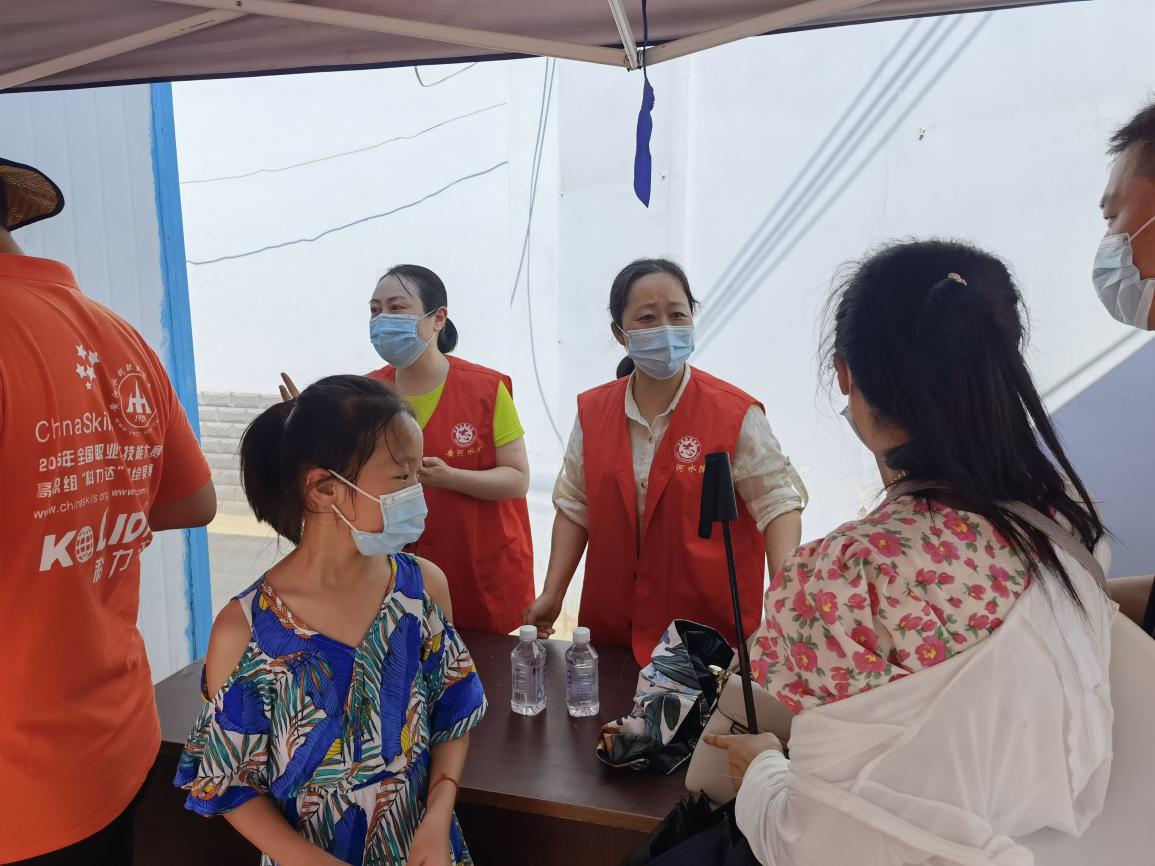 6月20日、21日,市区最高温度达到39℃,由总支委员、支部委员4名党员干部组成的志愿小组提前到达核酸检测点,指导维护现场秩序,提醒群众提前准备相关证件。因九年级学生参加中考、八年级学生参加会考和部分小学生上课需求,连续两天上午的采集队伍都涌入大量的中小学生,并且学生没有身份证者较多。志愿小组成员耐心安抚群众情绪、维护现场秩序,同时认真进行逐个手动信息录入及核实,并做好相关问题的解答工作。