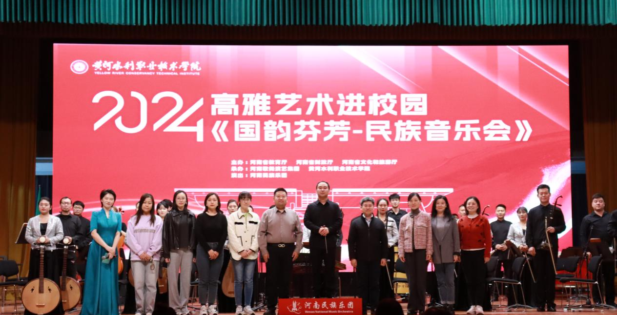 10月22日,2024高雅艺术进校园活动,河南民族乐团《国韵芬芳-民族音乐会》在黄河水利职业技术学院举行。校纪委书记刘许亮作为校方代表为演出致辞。校团委书记郝黎闻,艺术与设计学院院长鄢彬彬,副院长李娅,副院长李蒍韦,学院教师代表和全校近千名师生共同观看了演出。