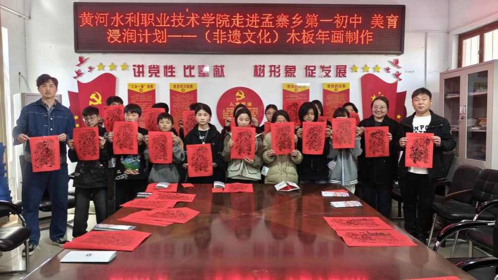 为深入推进“美育浸润行动计划”,助力乡村学校美育发展,弘扬中华优秀传统文化,4月2日,黄河水利职业技术学院艺术与设计学院专业教师周瑶、倪磊赴兰考县孟寨乡第一初中开展非遗文化木版年画制作体验活动。