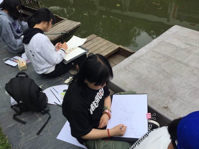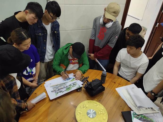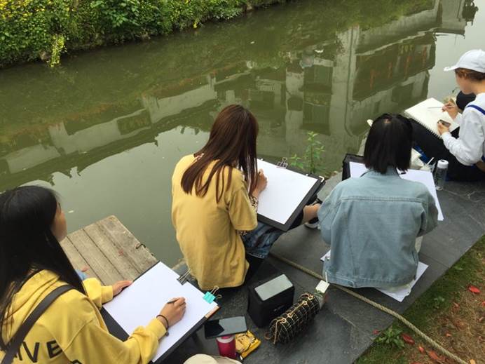 5月7日艺术与设计学院环境艺术设计专业的师生们在婺源县李坑的写生采风生活正式开始。大家置身大自然的怀抱,拿出画笔,将美景在画纸中呈现。一天的创作完成之后,晚间活动按时进行。杜雨老师、闫瑾老师以认真的态度,查阅每一位同学的写生作品,讲解手绘方面容易出现的各种问题,并一一提出解决方案。