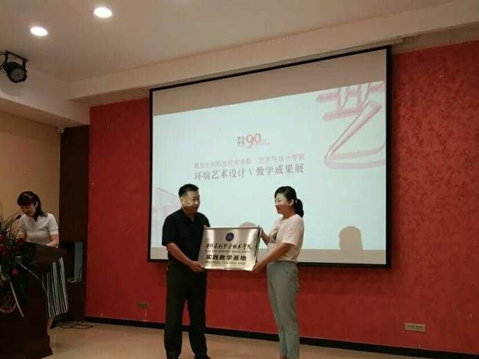 最后,开封文化客厅与黄河水利职业技术学院艺术与设计学院代表人上台举行校企合作实践基地授牌仪式。