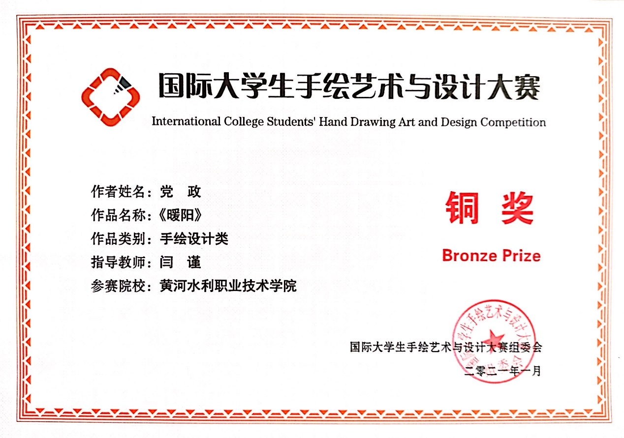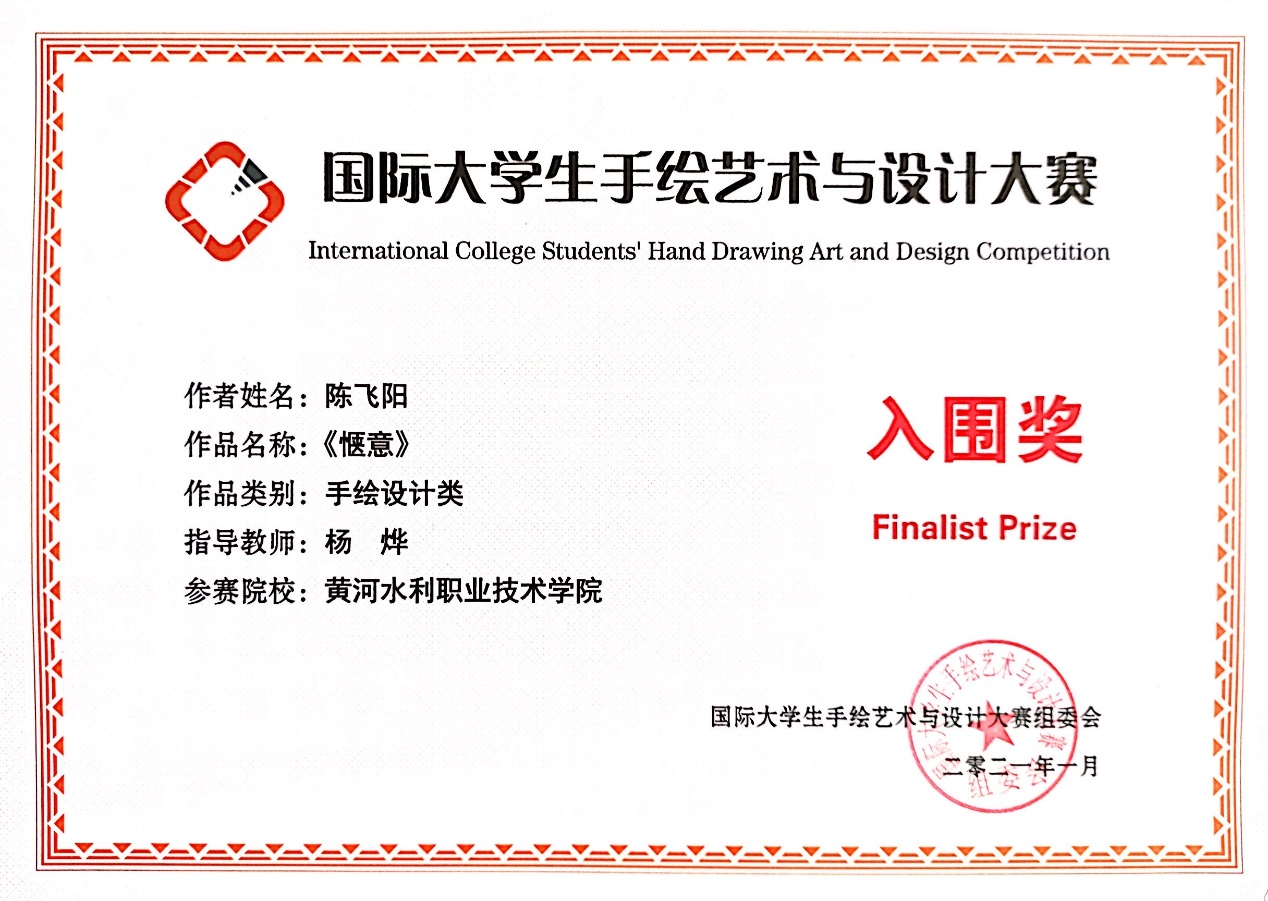 近日,由国际手绘艺术教育联盟主办的2020年国际大学生手绘艺术与设计大赛落下帷幕。我院闫谨老师和杨桦老师指导的参赛作品斩获了多个奖项。其中,党政同学的作品《暖阳》《森林小屋》分别获得大赛的铜奖以及优秀奖,陈飞扬同学的作品《回归》与《惬意》也分别获得大赛的优秀奖与入围奖。闫谨老师也获得了优秀指导教师的奖项!