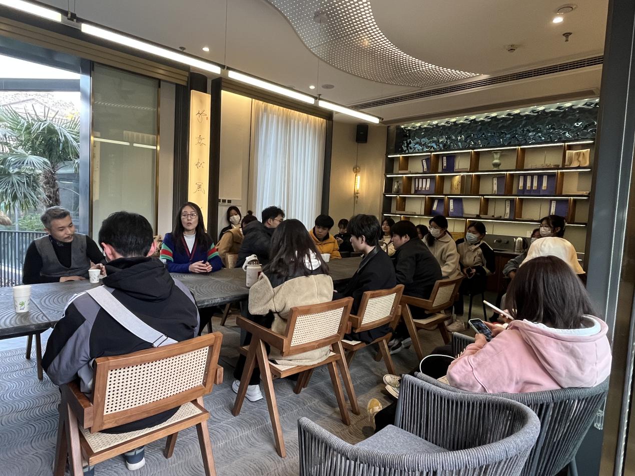 整个调研过程由企业安排的讲解员讲解和学生的现场拍照展开,大家兴致勃勃地听着和街区有关的历史人物和故事,利用手机搜集设计元素。最后,在街区的文书书院,企业负责人和师生们举行了一场即兴小型设计沙龙,同学们通过交流了解了更多专业方面的资讯和专业对接的工作领域范畴,明确了今后的努力方向,树立了学习的信心。