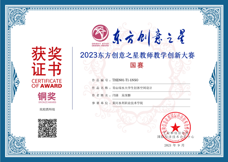 艺术与设计学院教师荣获2023东方创意之星教师教学创新大赛国赛铜奖