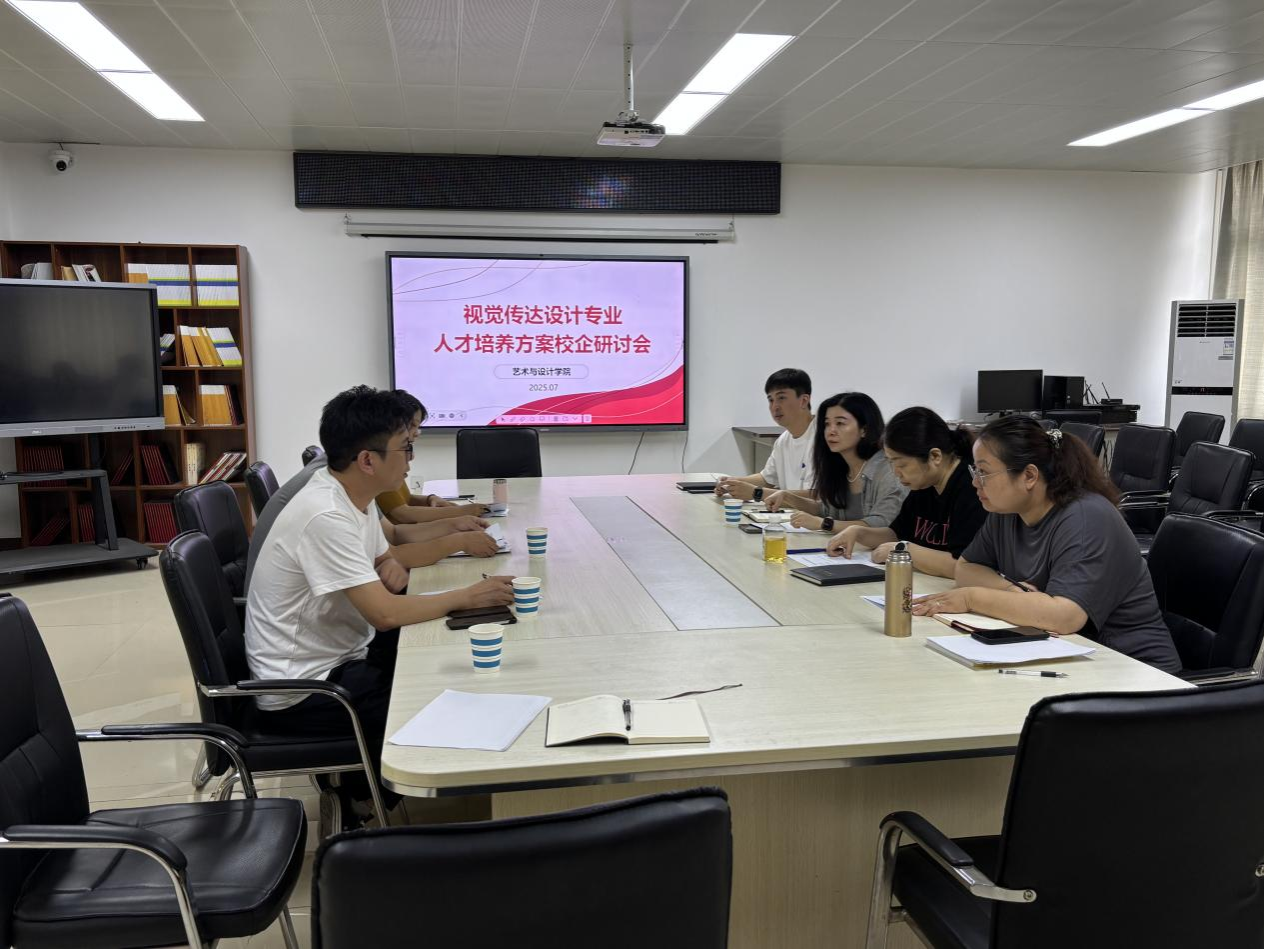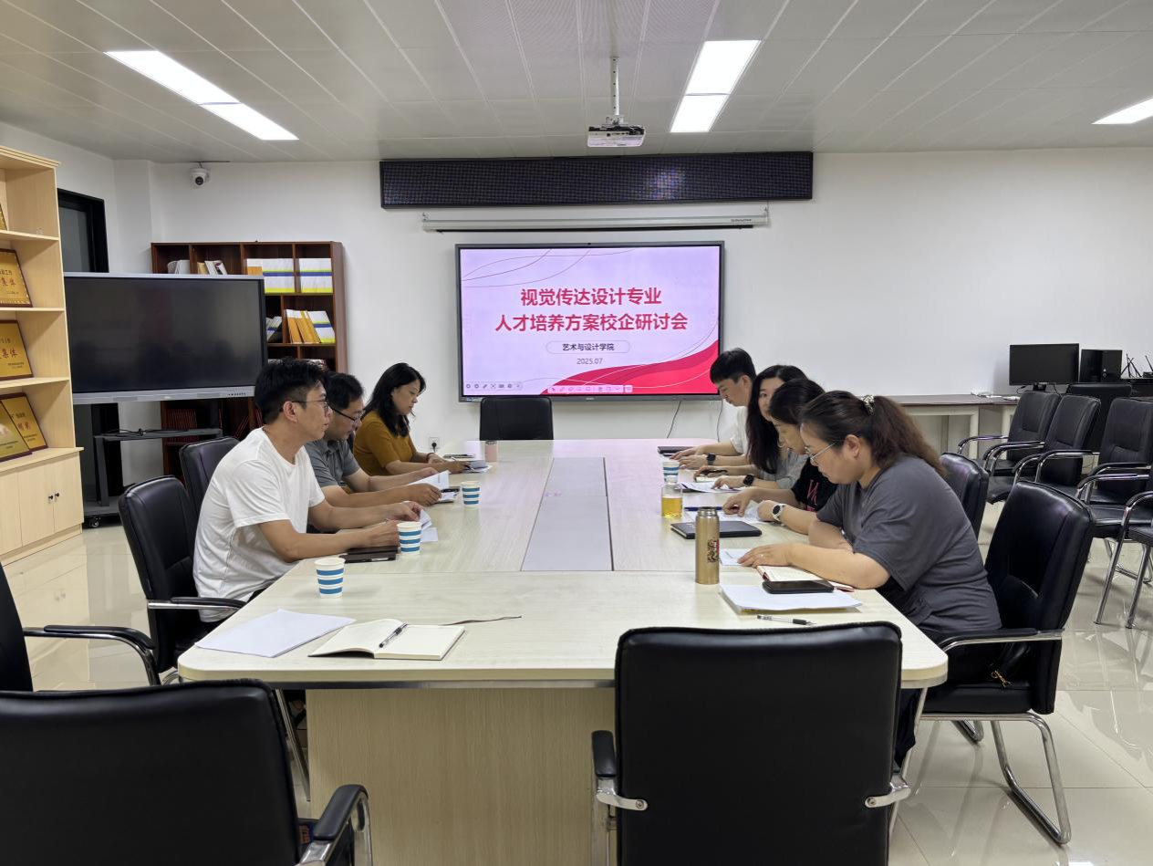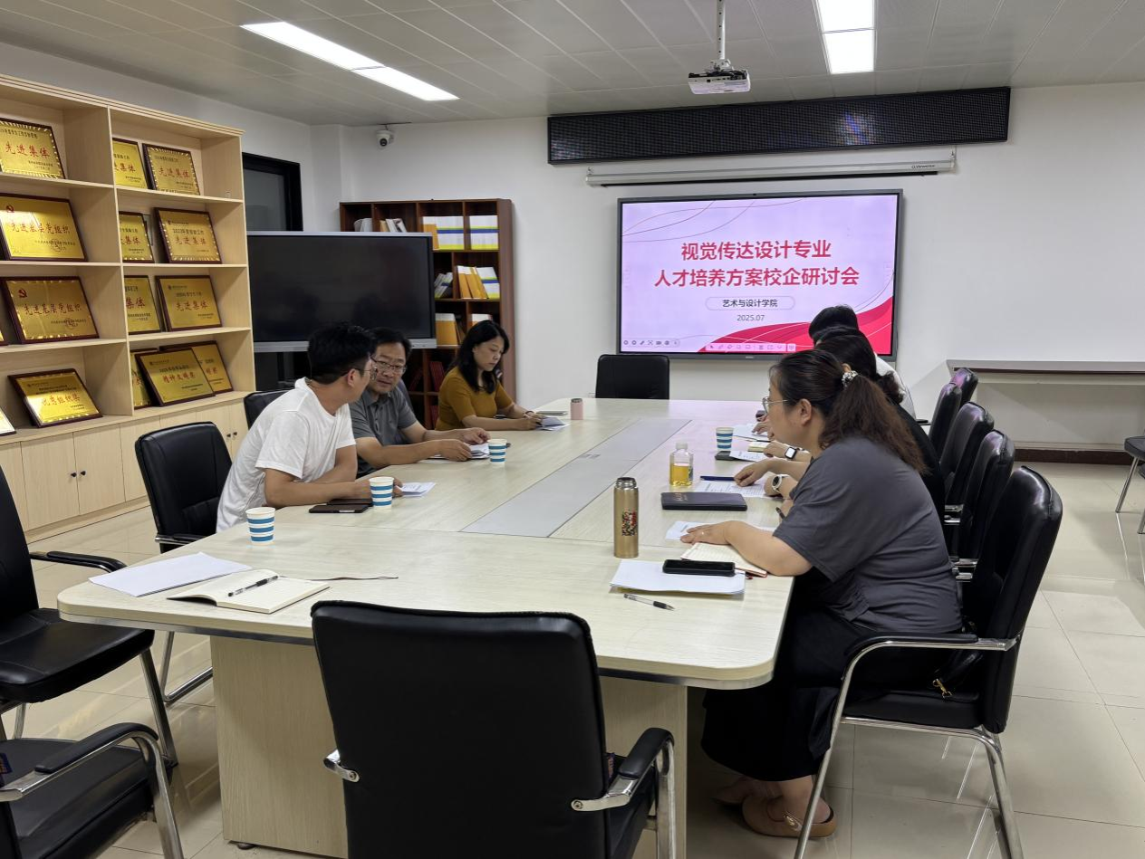 7月20日,艺术与设计学院(艺术教育中心)视觉传达设计专业举办2025年人才培养方案校企研讨会。开封日报社印务中心副主任孟庆、开封思邦广告公司总经理张金亚出席研讨会,艺术与设计学院副院长李蒍韦、视觉传达设计教研室主任陈豫及教研室全体教师参加会议。