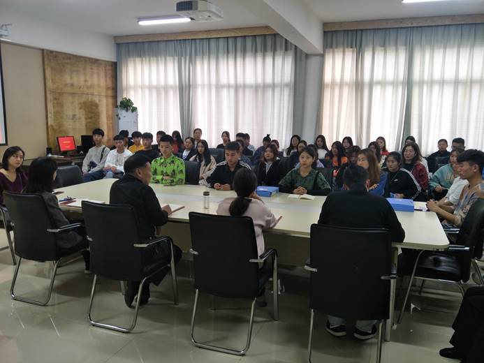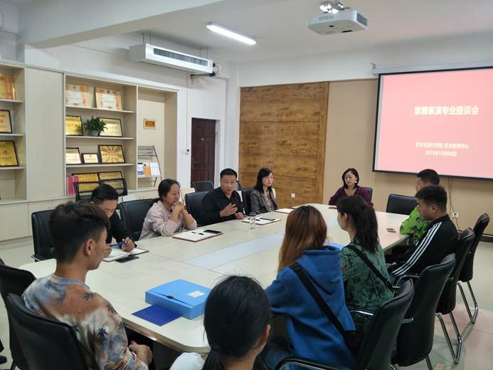 108日下午,艺术与设计学院院长华雷,书记耿亚杰,副院长鄢彬彬,面向我院歌舞表演专业全体学生,召开新学期专业座谈会。教研室主任高扬,办公室主任朱宁出席了会议。