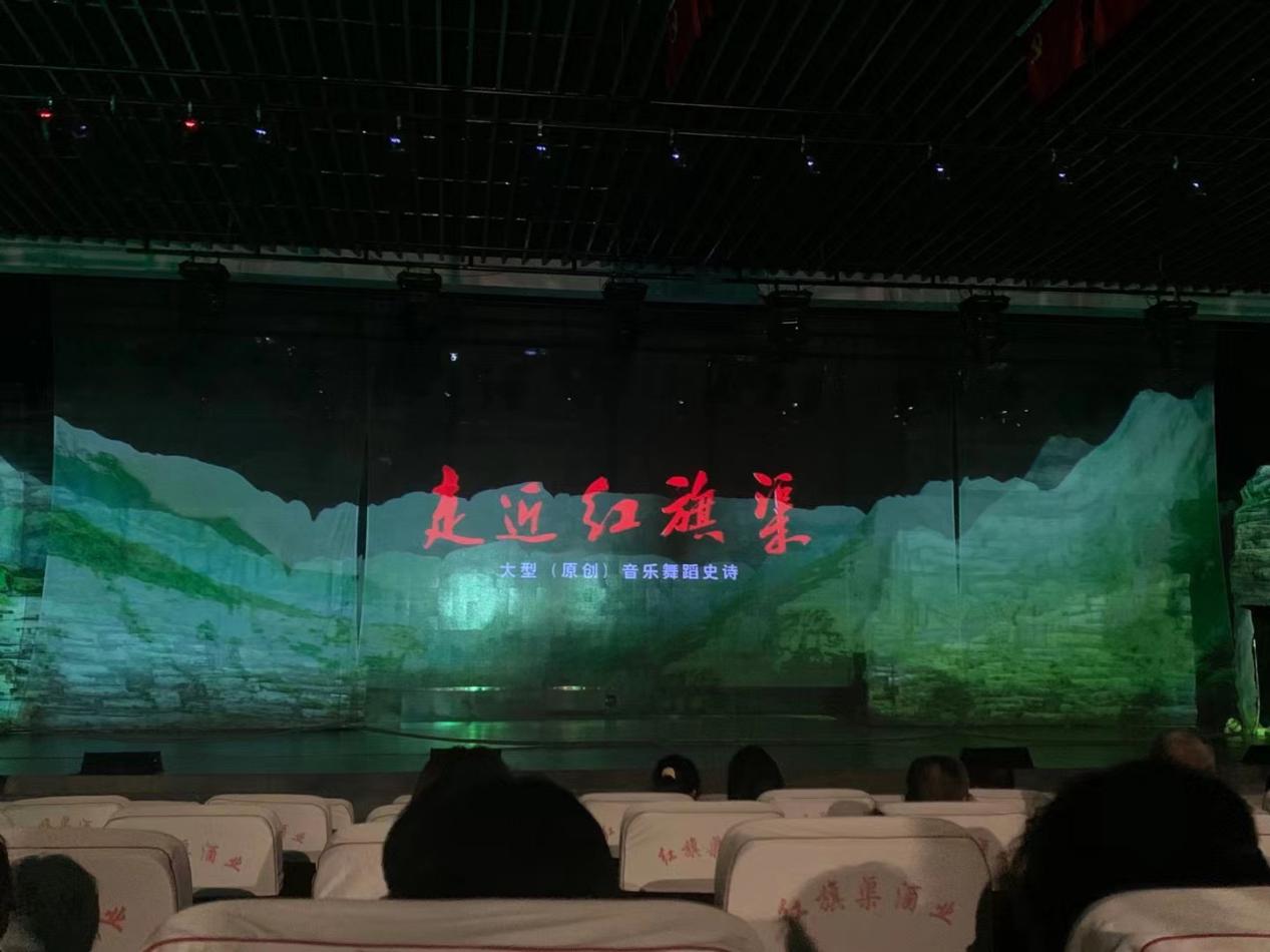 结合今年建党一百周年的主题,为了让青年大学生坚定理想信念,激发爱党爱国情怀,采风第二天带领学生参观了“世界第八大奇迹”被称为“人工天河”的红旗渠。师生们亲身感受红旗渠的伟大,在工作人员的讲解中,听到很多动人的故事,深深感受到“自力更生,艰苦奋斗,团结协作,无私奉献”的红旗渠精神,领略了当年共产党员和青年人昂扬的革命斗志和战天斗地的英雄气概。晚上,师生共同观看大型歌舞史诗剧《走近红旗渠》。大家对演员们的精彩表演报以热烈的掌声。尤其是看到为修建红旗渠而牺牲的我校优秀校友吴祖太总设计师的事迹时,同学们纷纷感动落泪。这也为之后节目的创编积累了宝贵的素材。