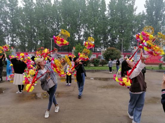 采风第三天,同学们来到信阳市固始县孙滩村体验学习民间非物质文化遗产——花挑舞。县民间舞艺术家们表演了花挑舞、旱船、跑驴等独具地方特色的民间艺术节目,赢得了阵阵掌声。演出结束后,师生们观看了相关宣传视频,了解了花挑舞的历史、发展情况等。三土艺术团花挑舞表演艺术家还进行了现场实践教学,现场教授学生们花挑舞动作,同学们认真学习,乐在其中,为之后歌舞创编的学习打下基础。