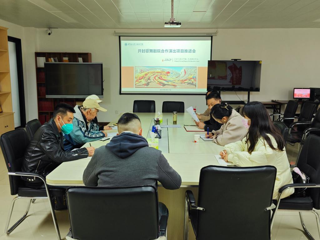 3月17日下午,开封市歌舞剧院院长郭冬慧,副院长刘建军和张若愚老师莅临我院召开合作项目推进会议,艺术与设计学院院长华雷,歌舞教研室主任高杨以及部分专业教师参加会议。