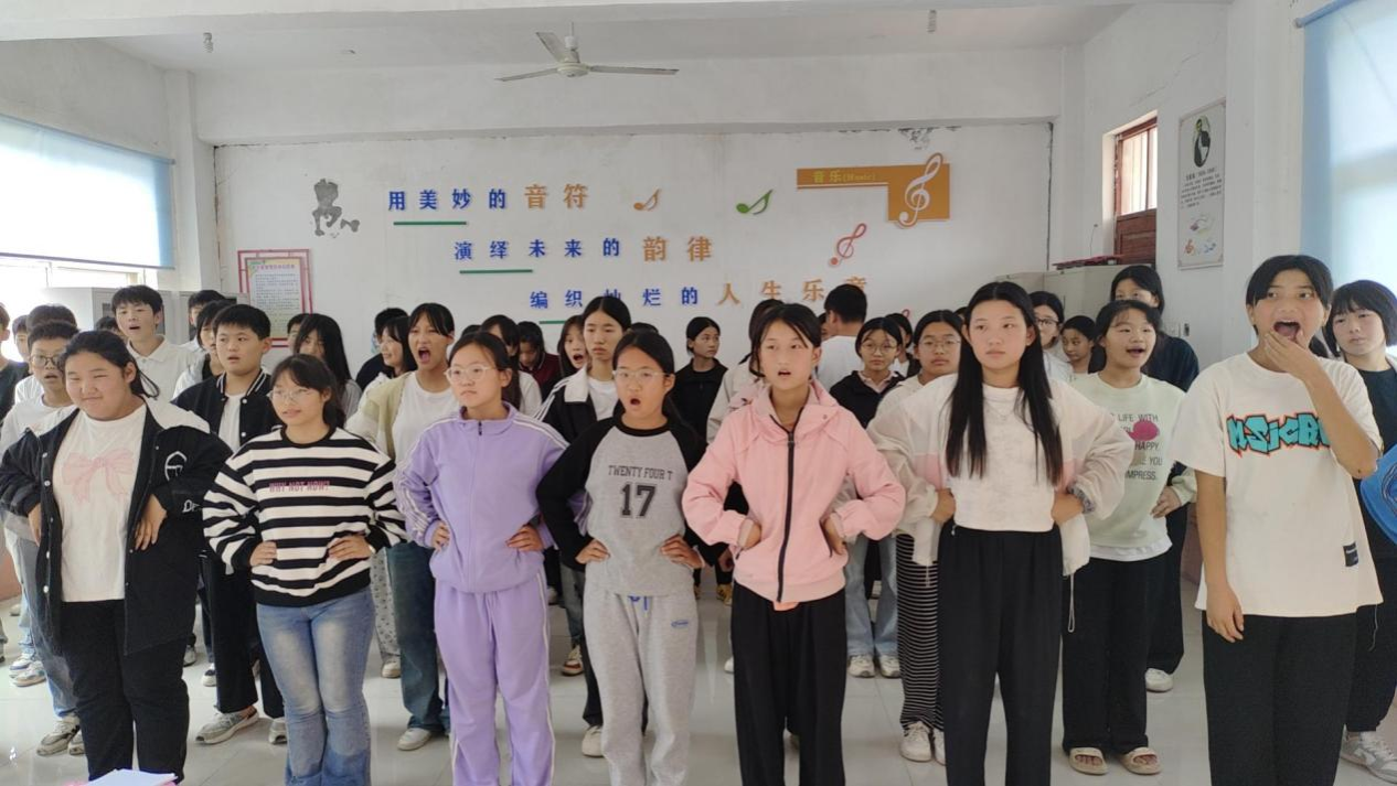 李冰老师与孟寨乡第一初中校长吴昊、教师田雨露首先对合唱团员进行了选拔。通过组织学生现场试唱,评估学生的音准、节奏感及音色匹配度,初步筛选了一批具备基本音乐素养和良好音色的合唱团员。