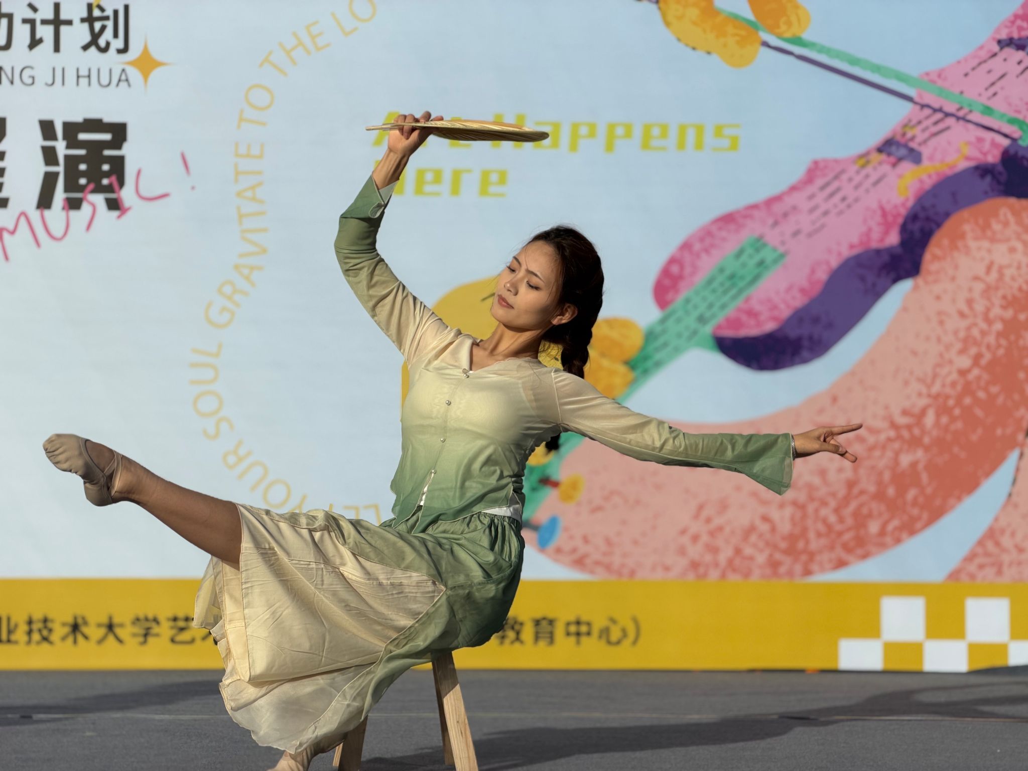 展演在活力四射的《盘古表演和》开场舞《嘿吼哈》中拉开帷幕。竹笛合奏《美丽的神话》古琴独奏《桃李园序》尽显中华传统乐器的悠扬典雅,让同学们在丝竹之音中感受中华优秀传统文化的博大精深,涵养文化自信。独舞《胶州秧歌》将民俗艺术的独特韵味展现得淋漓尽致,四人舞《一荤一素》以温情脉脉的舞姿,演绎出平凡生活中的亲情暖意,细腻的情感表达引发全场共鸣器乐演奏环节亮点纷呈。排鼓《楚汉决战》将展演推向高潮,鼓点铿锵有力、节奏张弛有度,展现出雄浑豪迈的气魄,让师生们直观感受传统打击乐的震撼力。