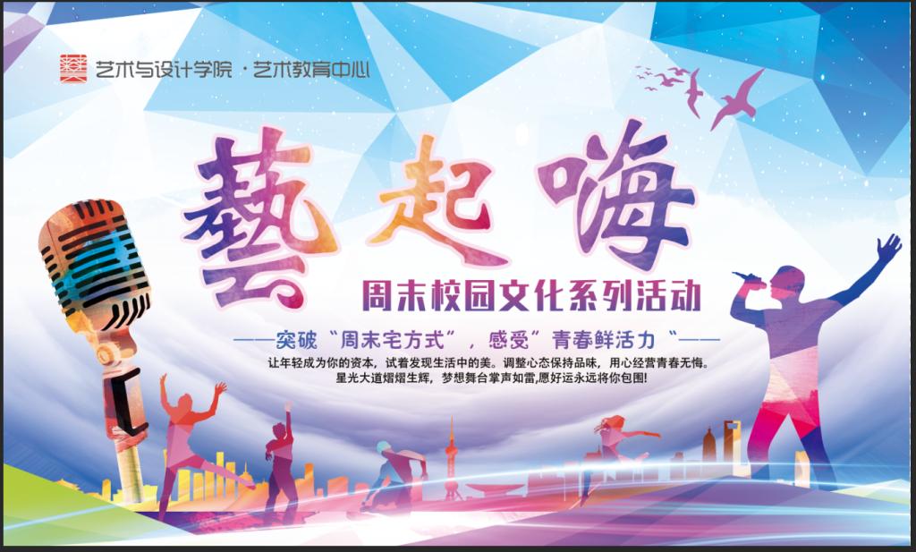 为丰富我校学生校园文化生活,提高学生们的人文素质和艺术素养,2月25日晚7:00,由艺术与设计学院艺术教育中心主办的“藝起嗨”周末校园文化系列品牌活动式在我校扬帆广场隆重开幕。