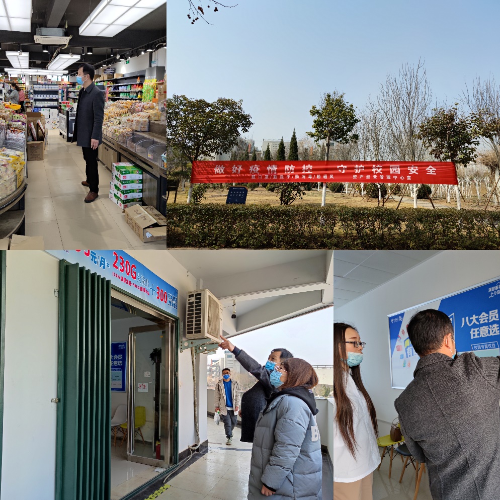 商户入校前,资产经营管理中心全体人员对生活服务中心公共区域和风雨球场快递点进行了全面消杀及水电安全隐患排查。各商户入校后,积极备货打扫卫生,为开学做充足准备,资产经营管理中心党总支书记鄢彬彬、主任周晓峰带领全体员工多次对生活服务中心各商铺食品安全、消防安全、公共设施安全隐患排查等准备工作监督检查。