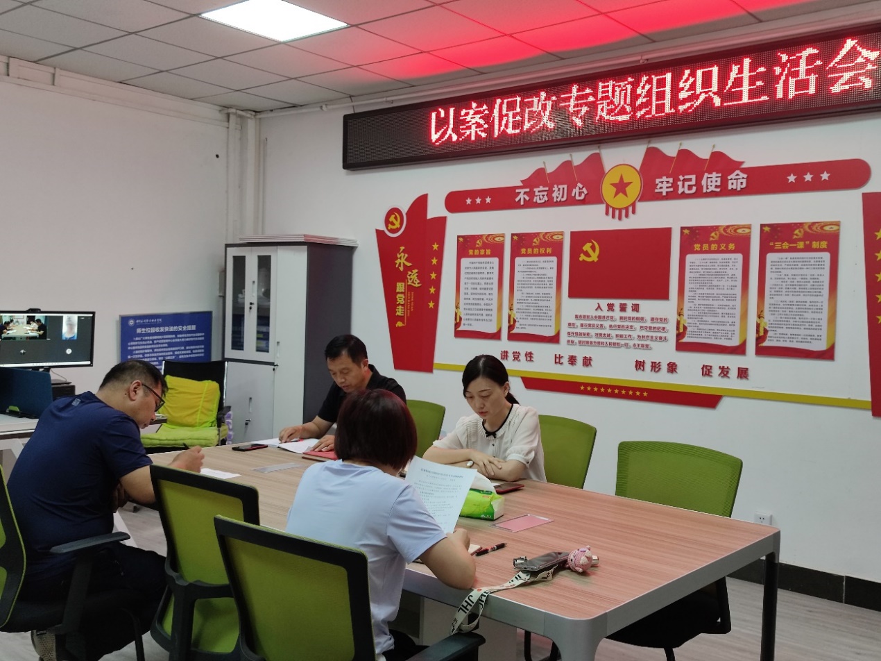 7月27日上午,资产经营管理中心党总支围绕我校违纪违规案件开展以案促改组织生活会,会议由资产经营管理中心党总支书记鄢彬彬主持,全体党员通过线上线下同步进行的方式,参加会议。