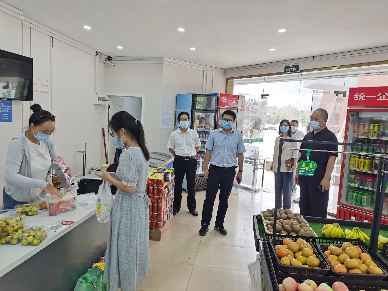 胡昊一行巡查了重点商铺的卫生环境、备货情况,抽查了个别商品的保质期,向商铺负责人详细了解物资准备情况、经营情况及相关防疫举措落实情况。并与购物学生亲切交谈,了解商品价格和学生的消费体验。