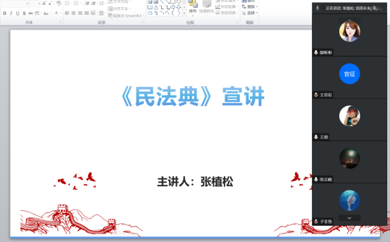 随后,张植松又按照双周政治理论学习安排,领学了宪法、以及《中华人民共和国民法典》中物权篇的主要内容。