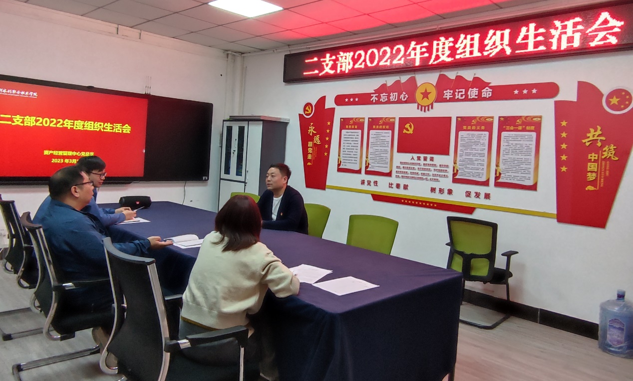 在深入学习贯彻习近平新时代中国特色社会主义思想,全面学习把握党的二十大精神的基础上,3月14日下午14:00,资产经营管理中心党总支二支部召开2022年度组织生活会暨民主评议党员大会,会议由支部书记关震主持。