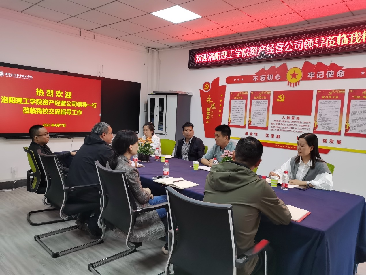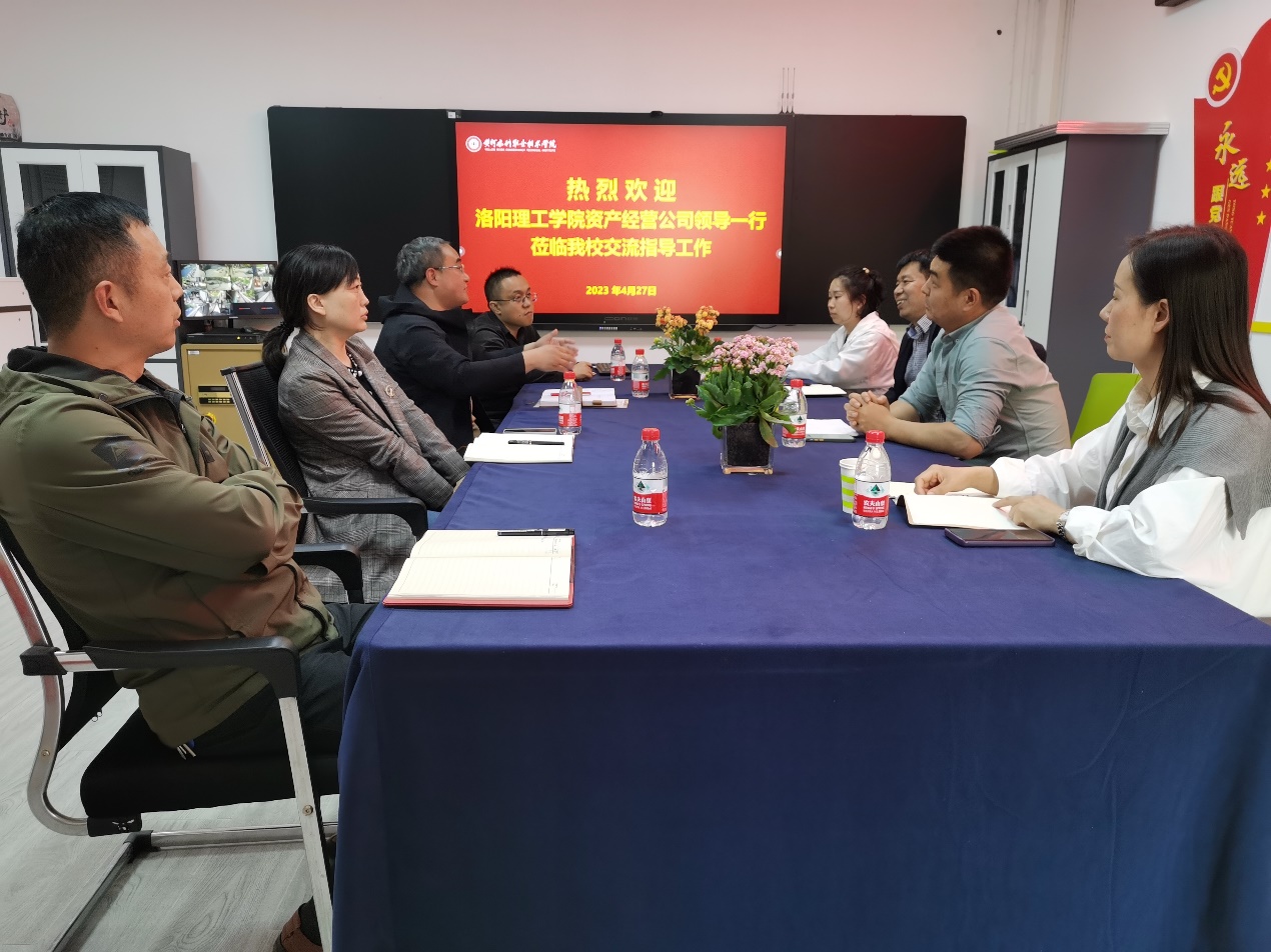 4月27日下午,洛阳理工学院资产经营公司副总经理王浩一行四人莅临我校交流指导工作,资产经营管理中心党总支书记鄢彬彬,主任周晓峰,副主任成继恩、张志峰等热情接待了来访一行,并在资产经营管理中心会议室进行交流座谈。