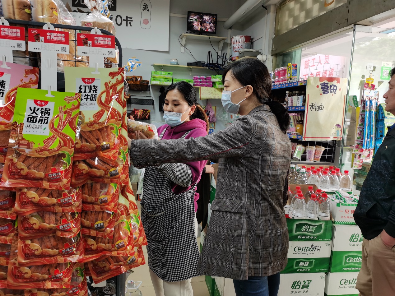 会后,鄢彬彬带领中心人员来到生活服务中心开展安全隐患排查工作,提示商户关于消防安全及食品安全等注意事项。